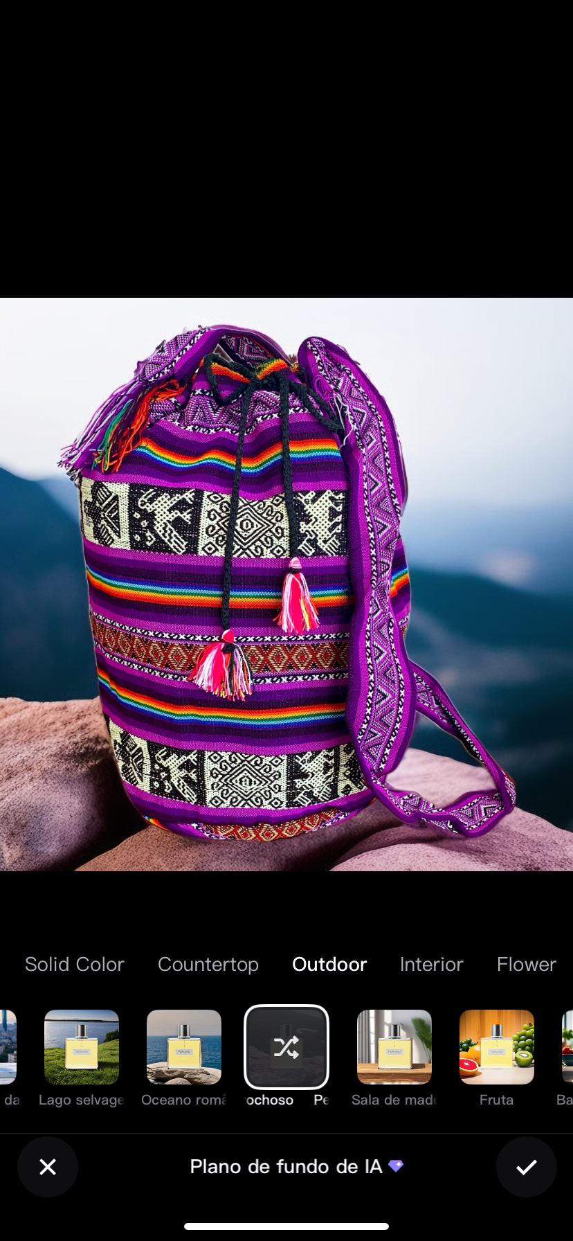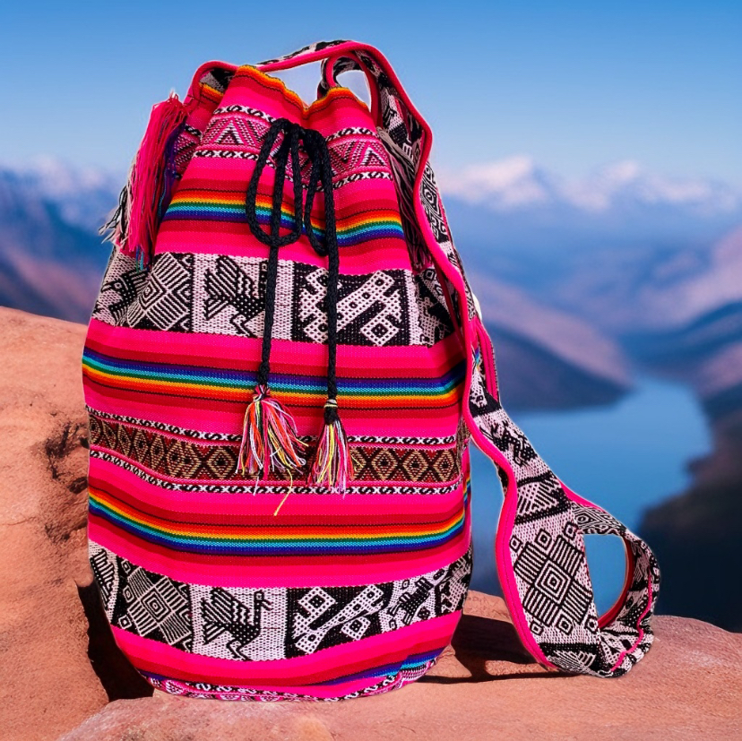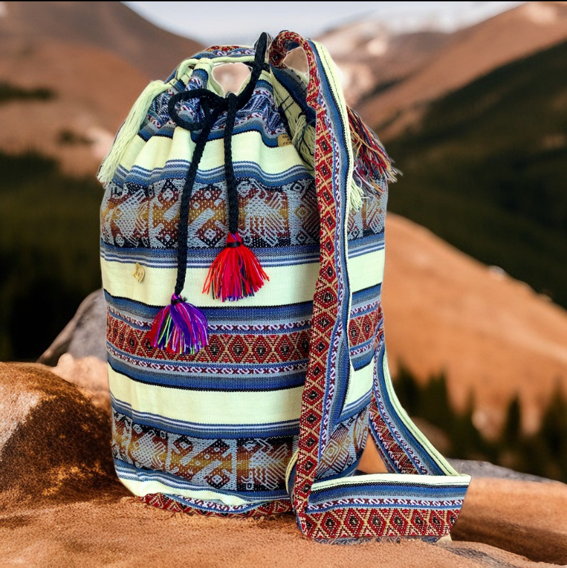 Produzido a partir de tecido tradicional artesanal do Peru com uma imensa diversidade de padrões encontrados nos tecidos dos Andes peruanos, profundamente enraizados em antigas tradições transmitidas de geração em geração ao longo de milhares de anos.
