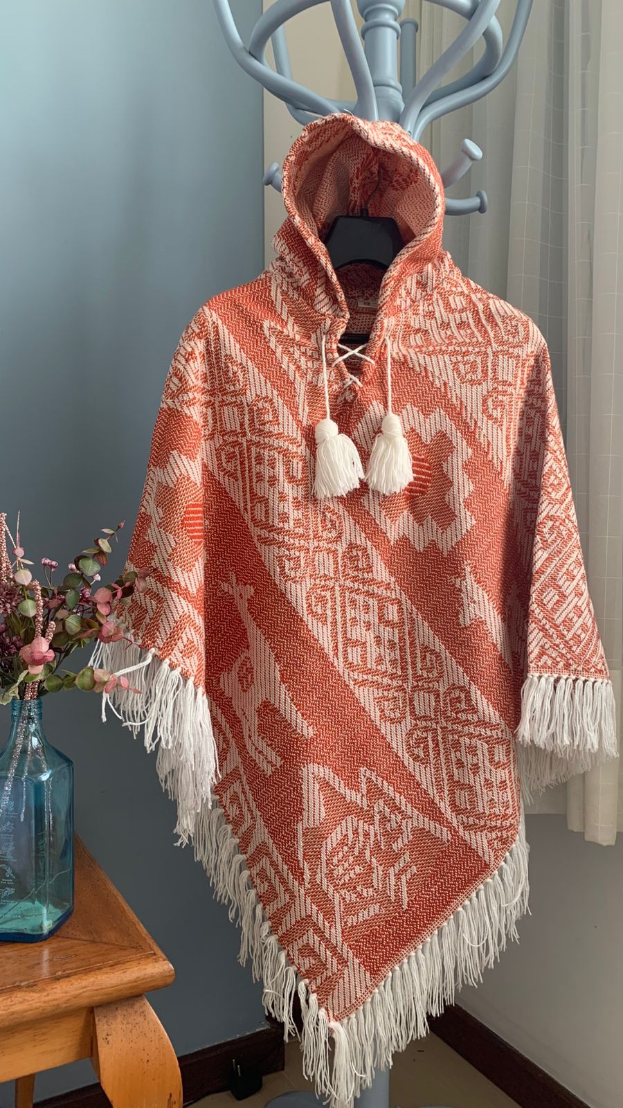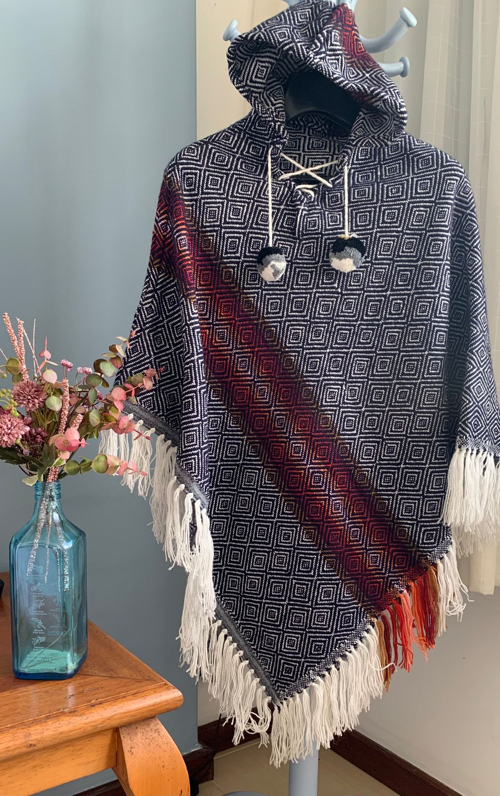 Leve um pedaço do Peru com você aonde quer que você vá com este requintado Poncho Feminino feito à mão, inspirados na rica herança cultural da região norte do Peru.