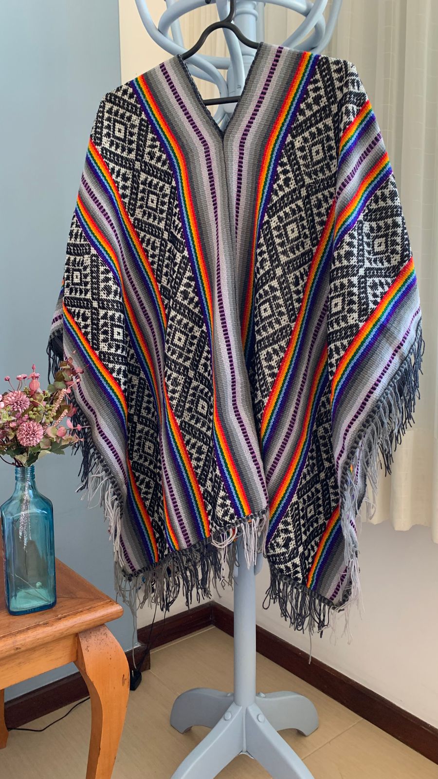 Poncho em Lã, Unissex, decote em “v” sem capuz