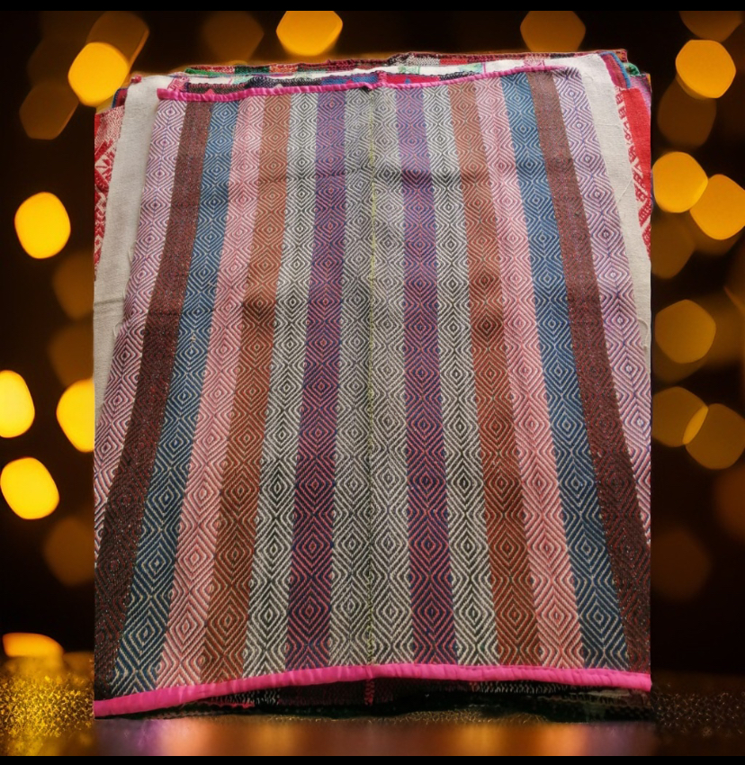Listras multicoloridas com desenhos entrelaçados com listras mais largas vermelhas e coloridas tem tamanho distintos e no padroizados por serem artesanais e feitos a mao. trem tamnhos entre 1,65mt x 185mt variando par maior ou menor conforme modelo.