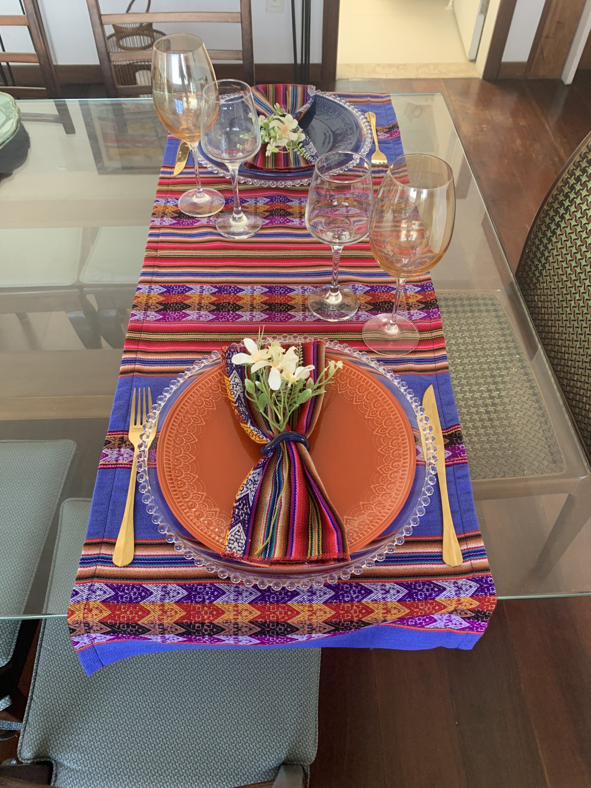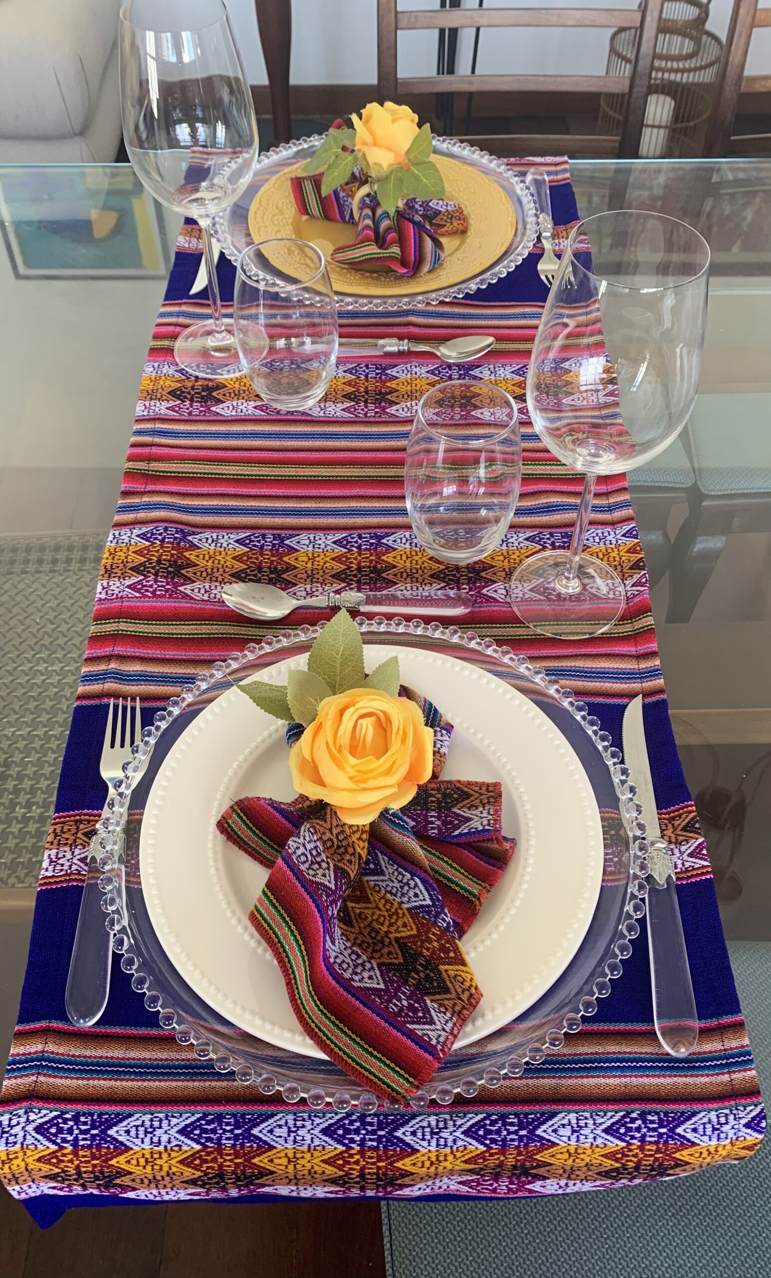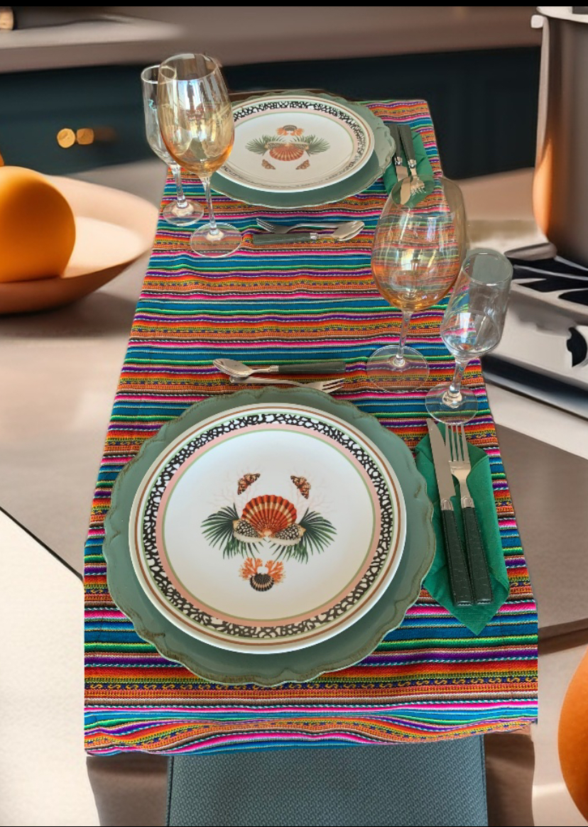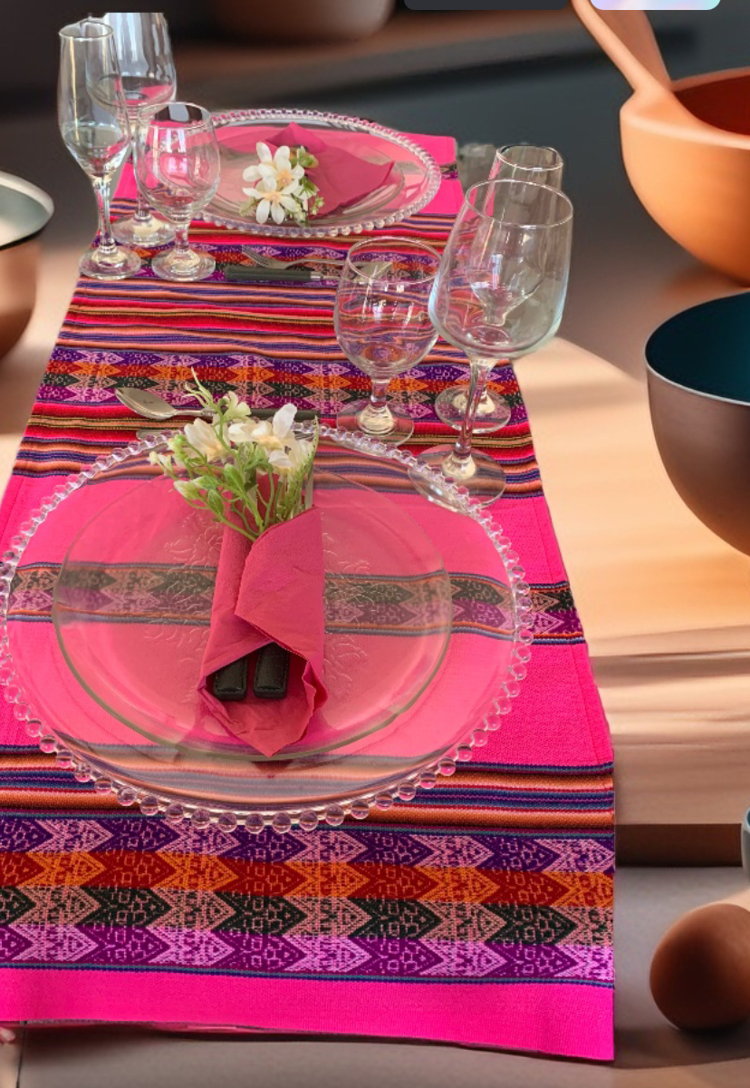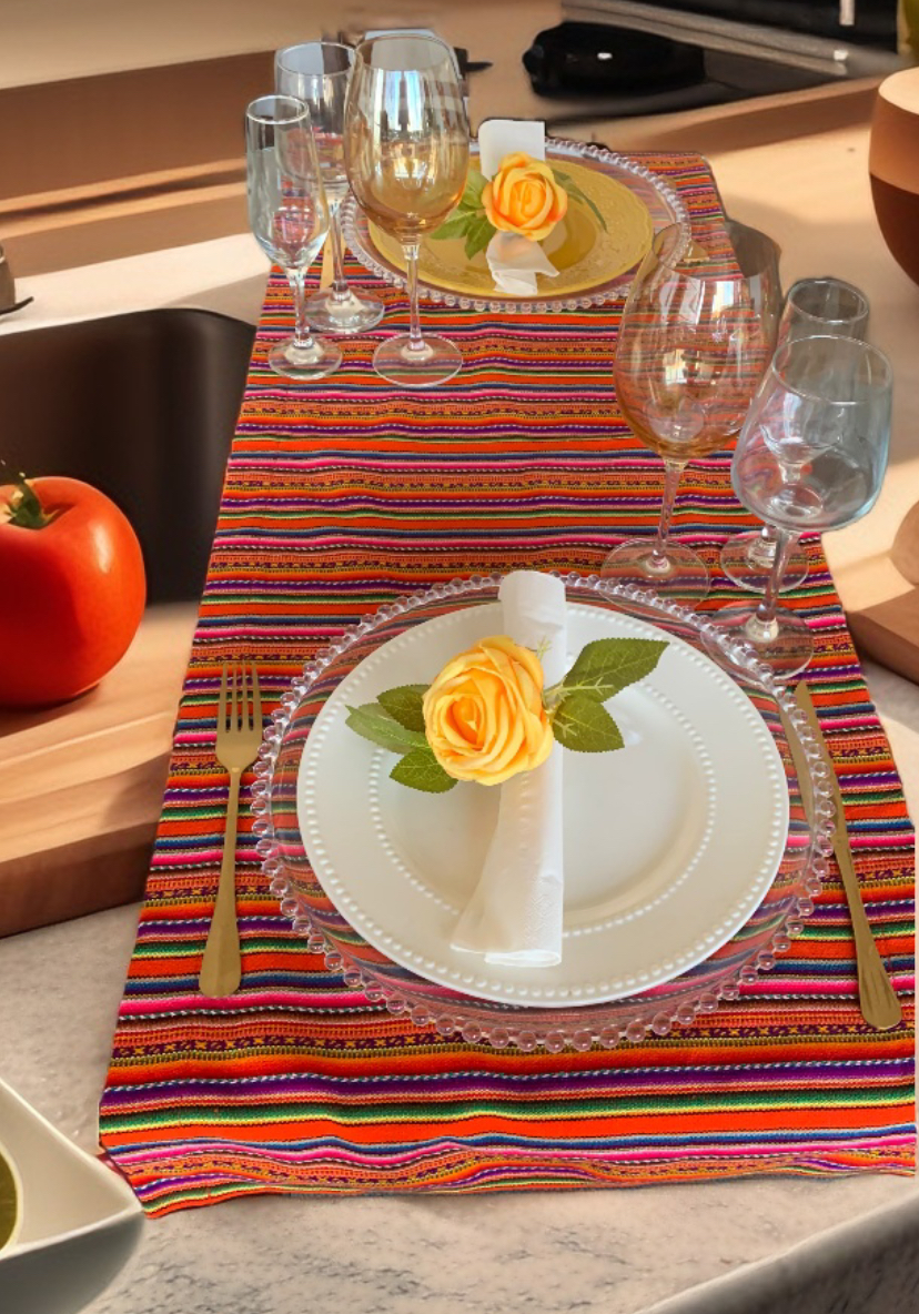 Os vibrantes Jogos Americanos Duplos ou Tê-a-Tê ou Trilhos de Mesa do Peru darão um ambiente extraordinário à sua casa. O tecido é tecido com padrões tradicionais e listras em ambos os lados e desenhos típicos dos povos peruanos. Eles são feitos de tecido andino peruano tradicional feito de mistura de algodão e lã. As cores vibrantes são típicas dos Andes do Peru na América do Sul e os designs são inspirados nos símbolos usados pela fascinante cultura antiga Inca do Peru e inspirados na cosmovisão.
