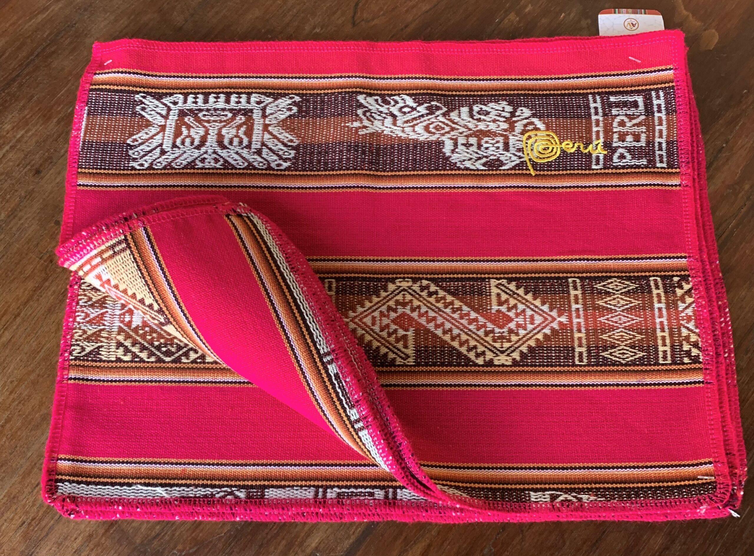 Os vibrantes jogos americanos do Peru darão um ambiente extraordinário à sua casa. Eles são feitos de tecido andino peruano tradicional feito de mistura de algodão e lã. As cores vibrantes são típicas dos Andes do Peru na América do Sul e os designs são inspirados nos símbolos usados pela fascinante cultura antiga Inca do Peru.
