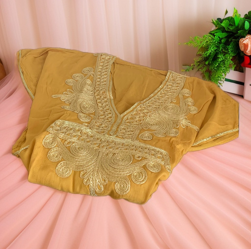 Vestido Kaftan Listrado tradicional marroquino, artesanais, design elegante com bordado dourado em fios de seda e aberturas nas mangas para liberdade de movimento e conforto, podendo ser transformado para qualquer ocasião, desde casual até especial.